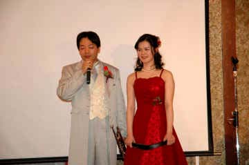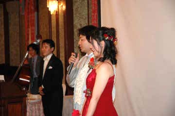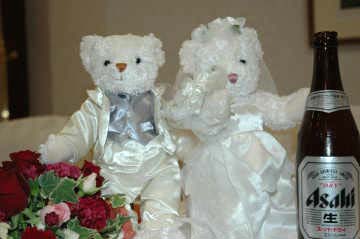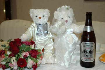 新婦がビールビンもってる |